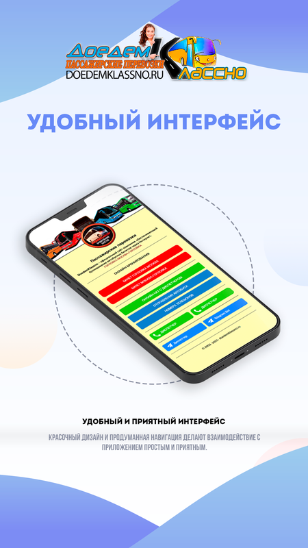 Выберите «Доедем классно» для вашей поездки, и вы оцените наше качественное обслуживание. Благодарим вас за интерес и с нетерпением ожидаем вашей поездки!