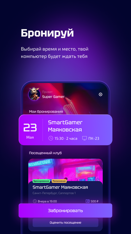 Онлайн-бронирование: Выберите игровое место в любимом компьютерном клубе и забронируйте его прямо через приложение SmartGamer.