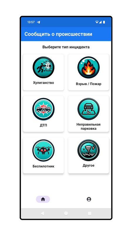 Мобильное приложение предназначено для упрощения коммуникации свидетеля инцидента(происшествия) и соответствующей государственной дежурной службой Российской Федерации. Пользователь с помощью приложения может быстро сфотографировать место аварии и отправить одним кликом информацию без необходимости указывать адрес и советующую службу реагирования - приложение само определит адрес и куда отправить данные.